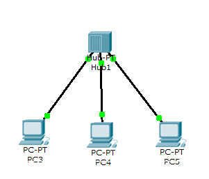 hubungkan setiap pc ke hub, dengan fast ethernet - port 0,port 1, port 2